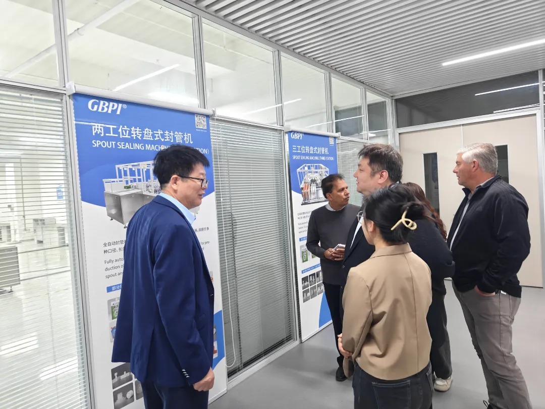 Mr. Arai and his team observed live demonstrations of GBPI’s fully automatic Rotary Mode Spout Sealing Machine and Dual-channel linear mode corner-spout sealing machine. They also learned about the global reach of our tube sealers and our collaborations with numerous well-known brands. The delegation spoke highly of the equipment’s production stability, high efficiency, and intelligent control systems. Their visit provided a direct and deeper understanding of Chinese enterprises’ technical capabilities in automated production equipment, earning their full recognition of GBPI’s achievements in equipment development and manufacturing.
